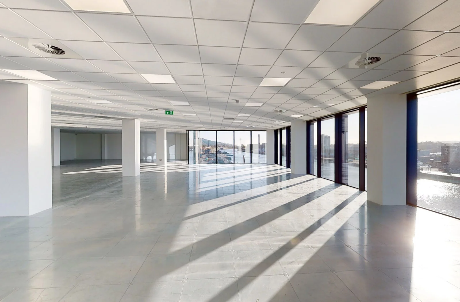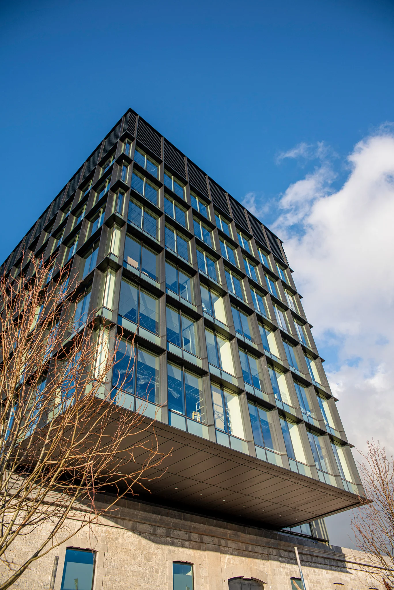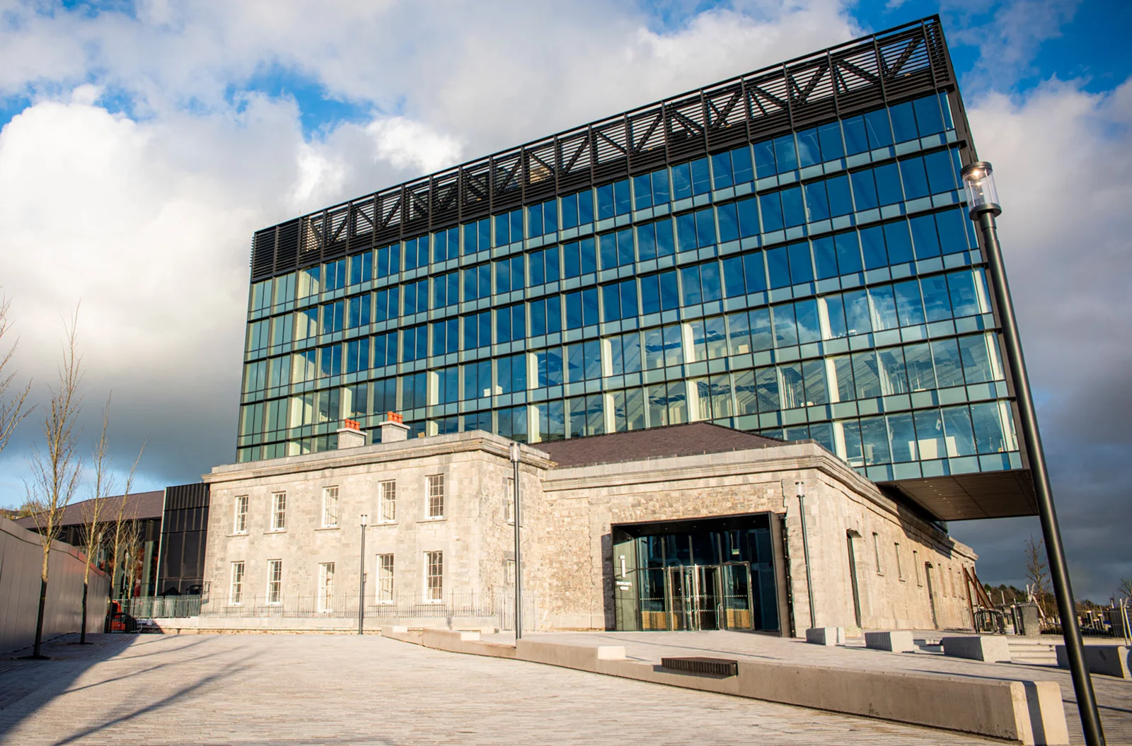 No. 1 incorporates a part newly constructed, part restoration to Grade A modern office block. The new building, cantilevered over the original Goods Shed Cork limestone wall, provides modern open floor plates with natural light from dual aspects. The upper floors of No. 1 have built-in solar shading to negate the south and west aspects of the building.
